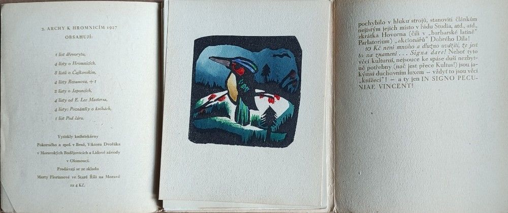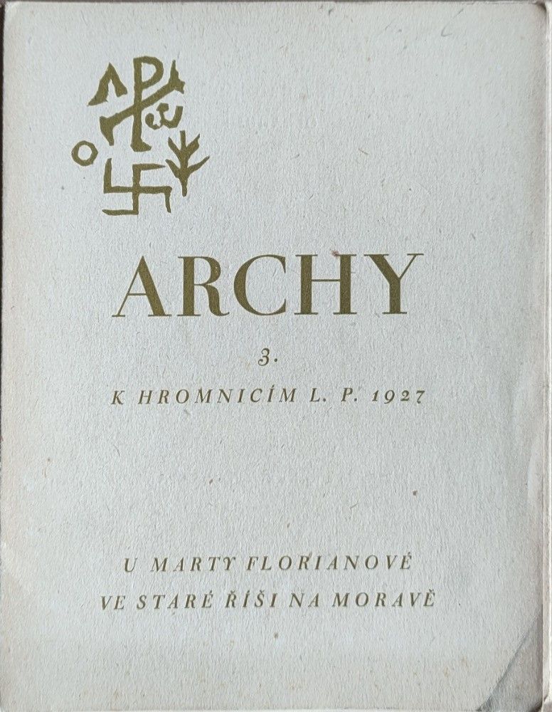 Úvod BIBLIOFILIE / PODPISY / VĚNOVÁNÍ / ČÍSLOVANÉ VÝTISKYArchy 3. k Hromnicím L. P. 1927 / Michael Florian