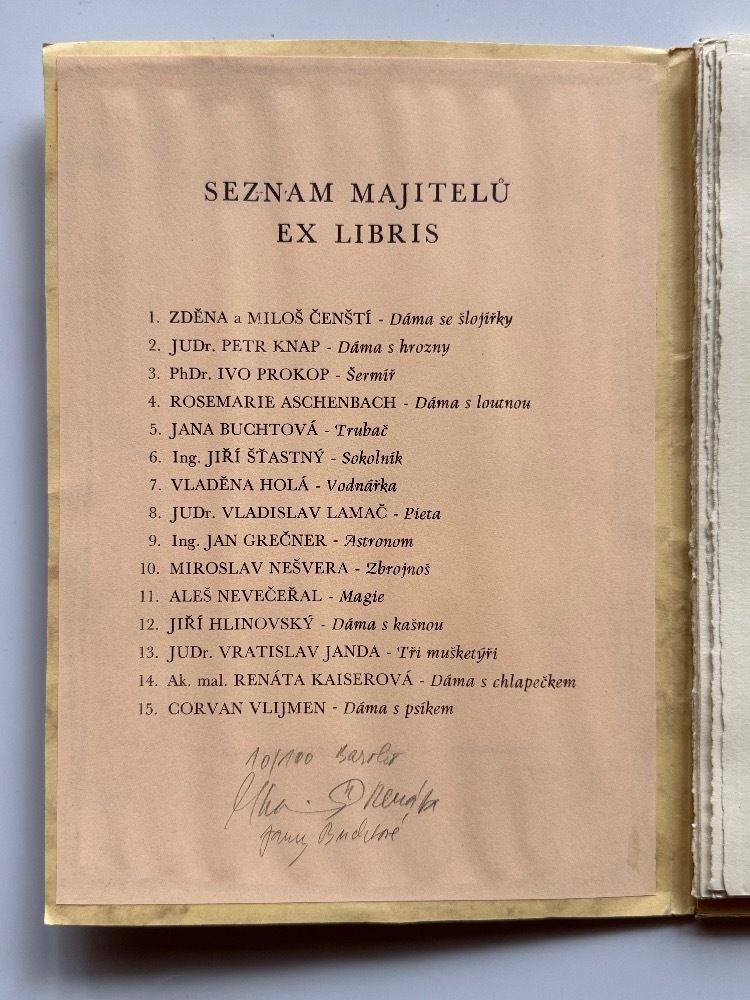 obsahuje 15 grafických listů (barevných leptů) - všechny signované a číslované