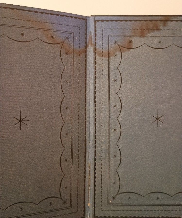 stav: na horní části obálce stopy po vyblednutí (spíše polití), dále se stopy objevují na obou předsádkách a několika listech knihy, jinak zachovalá (viz foto)