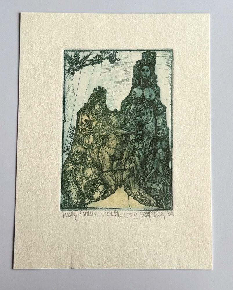 Úvod EX LIBRIS / GRAFIKAPavel Hlavatý / Barevný lept / Ex libris L. Kříž