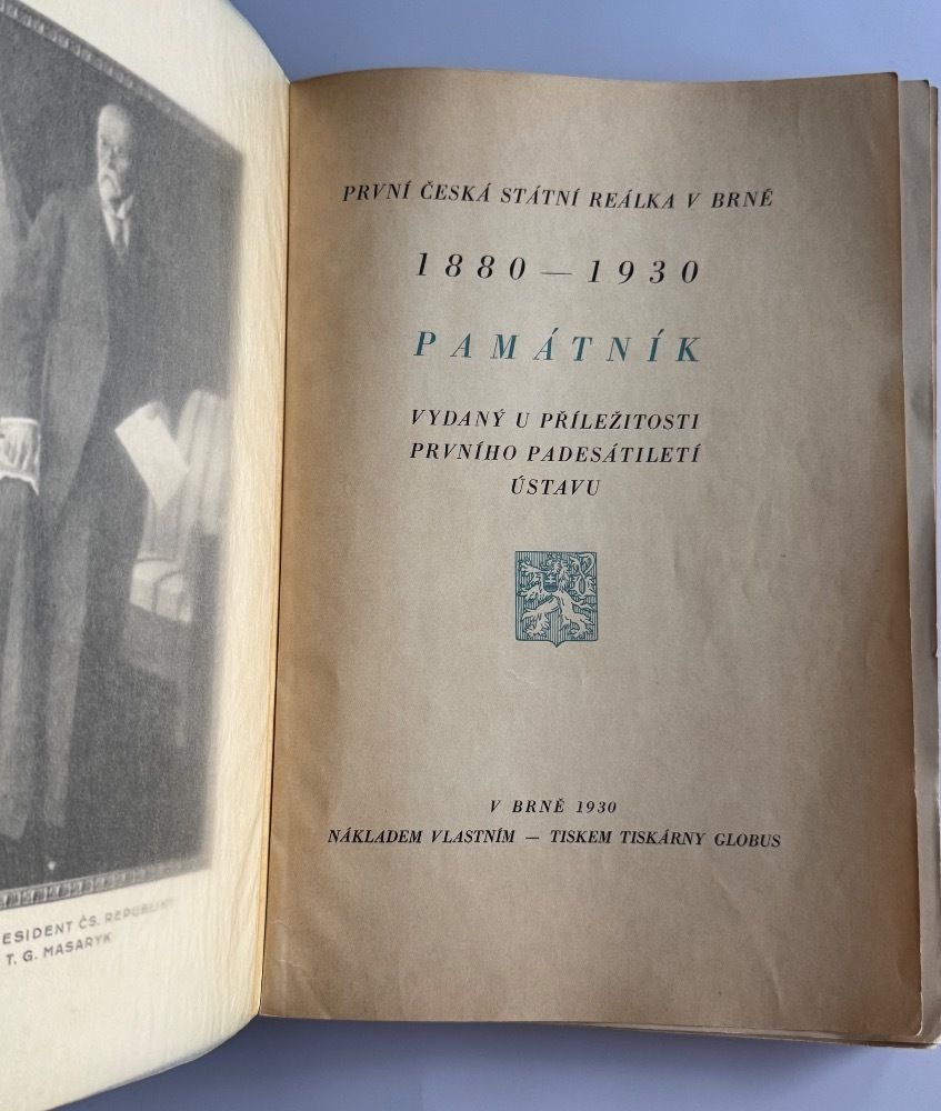 Památník 1880 -1930. PRVNÍ ČESKÁ STÁTNÍ REÁLKA V BRNĚ