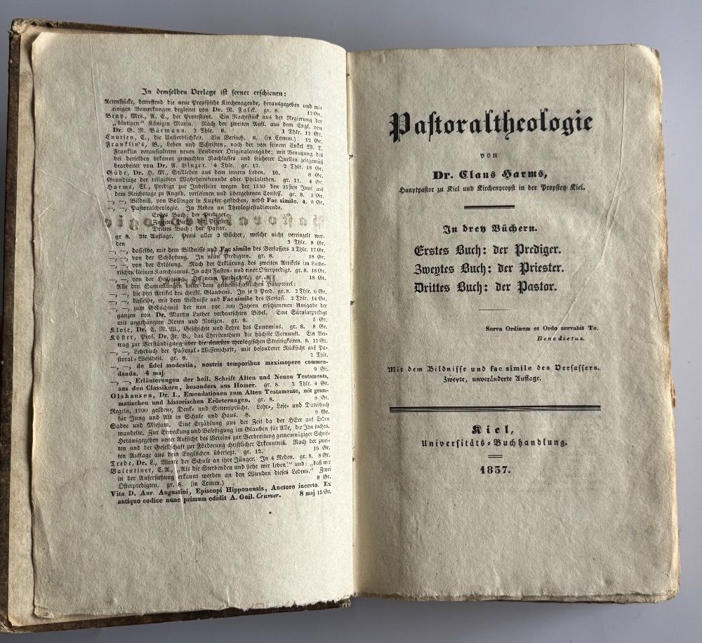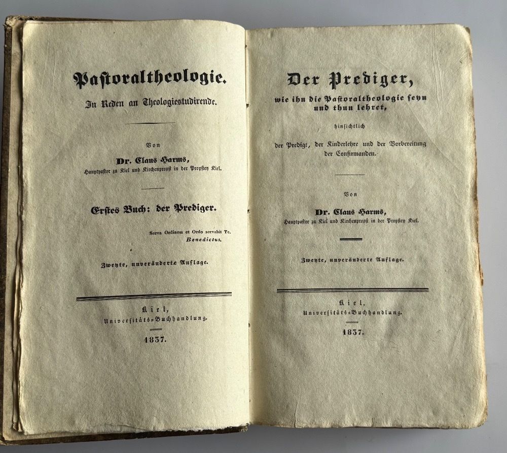 Dr. Claus Harms byl významný luteránský teolog, publikoval v roce 1837 dílo Pastoraltheologie, konkrétně část Der Priester (Kněz), nabízí hluboké vhledy do role pastora a je považována za stěžejní dílo v oblasti pastorální teologie.